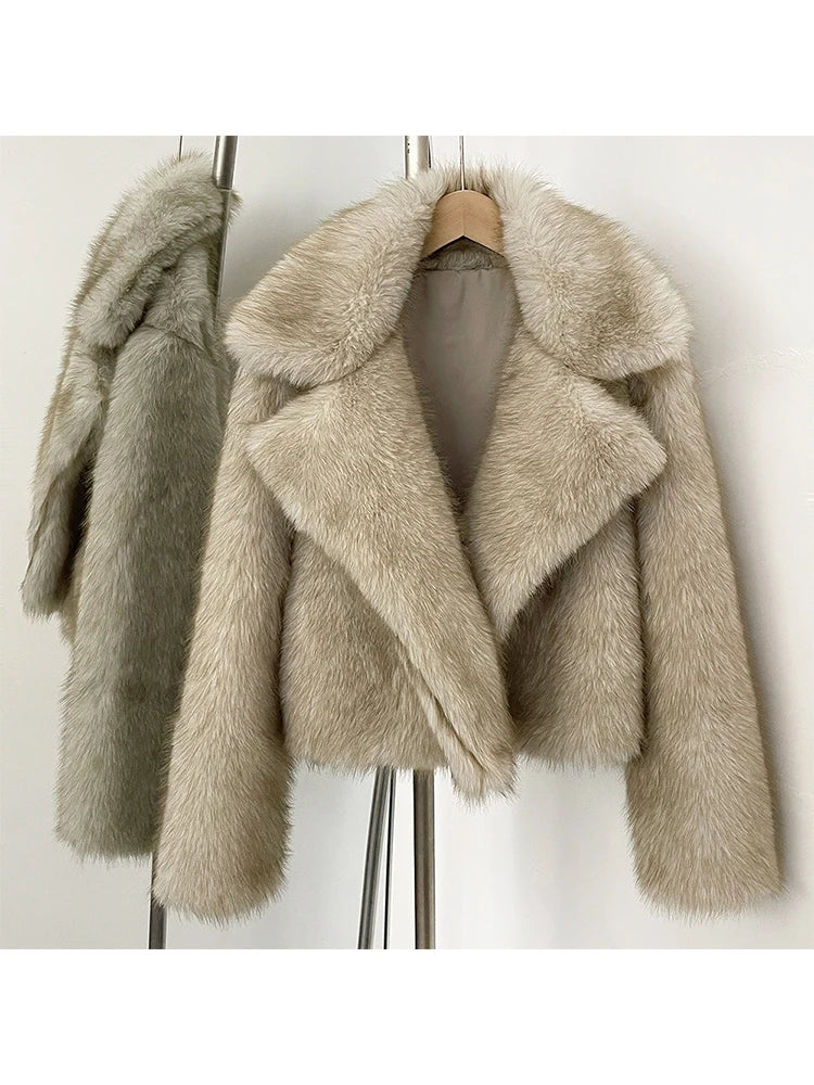 המעיל עשוי פרווה סינתטית איכותית במגע רך ונעים, עם גזרה רחבה ונשית, צווארון קלאסי מתקפל ועיצוב מודרני שמתאים לכל הופעה חורפית.