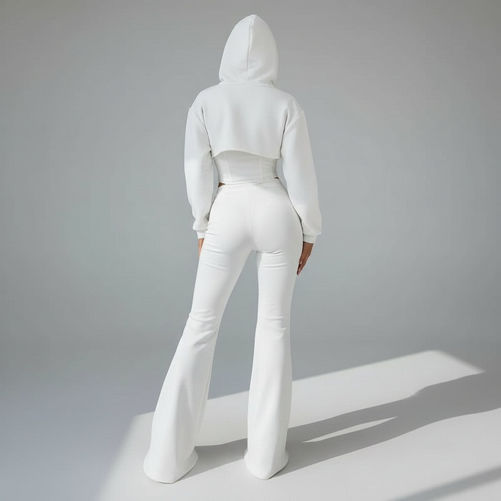 סט תלת-חלקי יוקרתי בעיצוב סטרפלס מחמיא, עם בד ניילון–פוליאסטר איכותי ואלסטיות קלה שמעניקה נוחות ותצורה מושלמת לגוף. מכנסיים ארוכים בגזרה רגילה עם גומי במותן, חולצה ארוכה חלקה וגופייה סטרפלס שיושבת בצורה נקייה ומהודקת.