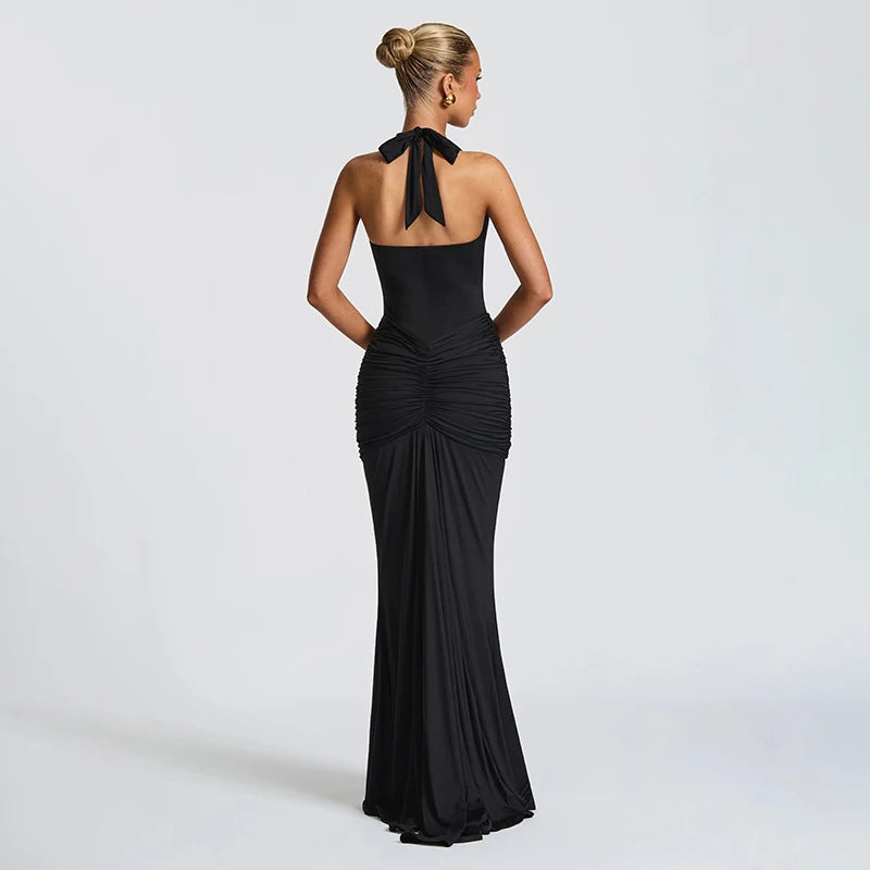 שמלת מקסי מהפנטת בעיצוב מחמיא ומודרני, המשלבת סגנון קלאסי עם נגיעה יוקרתית.